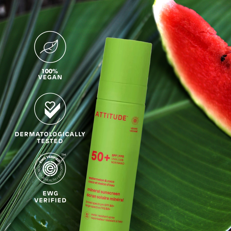 Το πιο ισχυρό φυτικό αντηλιακό – τώρα και σε σπρέι. Η σειρά ATTITUDE έχει μια καινοτόμο σύνθεση που γλιστράει απαλά στο δέρμα για να προσφέρει εξαιρετική αντηλιακή προστασία, χωρίς άσπρεσ κηλίδες και ενοχλητικά υπολείμματα.