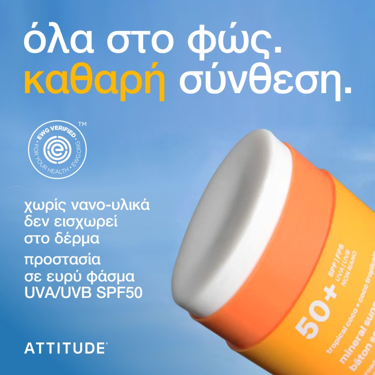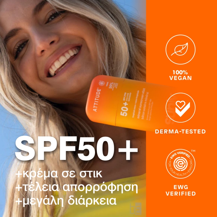 ATTITUDE Φυτικό Αντηλιακό SPF50 Κρέμα Stick – 100% vegan 60gr