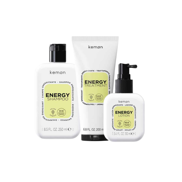 Σετ θεραπεία κατά της τριχόπτωσης Kit Kemon energy, 3 τεμάχια, για την αποκατάσταση της δύναμης και της ζωντάνιας στα μαλλιά, την αναζωογόνηση του τριχωτού της κεφαλής και την ενδυνάμωσή τους.